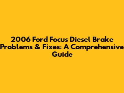 2006 Ford Focus Diesel Brake Problems & Fixes