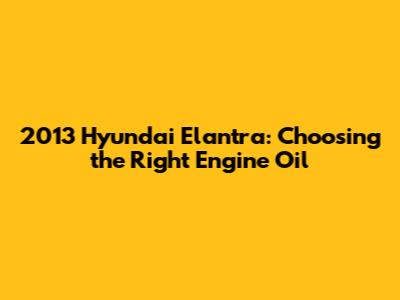Hey there, Elantra enthusiasts! If you're a proud owner of a 2013 Hyundai Elantra, you know how important it is to keep that engine purring like a kitten. And one of the most crucial aspects of engine maintenance? Choosing the right engine oil. Yeah, I know, it might seem like a mundane task, but trust me, the type of oil you use can significantly impact your car's performance, longevity, and overall health. So, let's dive into the nitty-gritty of selecting the perfect engine oil for your trusty 2013 Elantra.