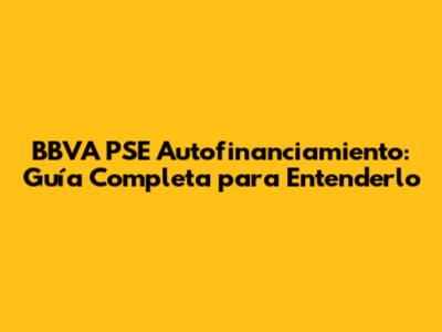 BBVA PSE Autofinanciamiento: Guía Completa Para Entenderlo