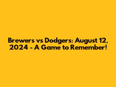 Brewers Vs Dodgers Aug 12 2024: Epic MLB Showdown