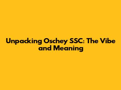 Unpacking "Oschey SSC": The Vibe and Meaning