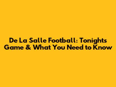 De La Salle Football: Tonight's Game & What You Need To Know