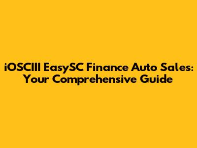 Hey guys! Are you looking to snag a new ride but feeling a bit overwhelmed by the whole financing thing? Well, buckle up because we're diving deep into the world of iOSCIII EasySC Finance Auto Sales! This isn't just another article; it's your ultimate guide to navigating the auto financing landscape with ease and confidence. We'll break down everything you need to know, from understanding the basics of auto loans to finding the best deals and avoiding common pitfalls. So, grab your favorite beverage, settle in, and let's get started!