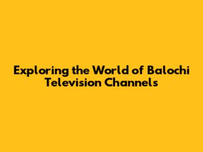 Exploring The World Of Balochi Television Channels