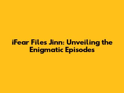 IFear Files Jinn: Unveiling The Enigmatic Episodes