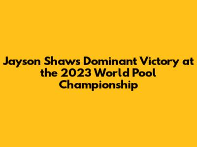 So there you have it, guys. Jayson Shaw's stunning victory at the 2023 World Pool Championship! It was a tournament filled with incredible shots, nail-biting finishes, and unforgettable moments. Shaw's performance was a masterclass in skill, strategy, and mental fortitude. It's a victory that will be remembered for years to come. Shaw's triumph has inspired fans and aspiring pool players worldwide, and his legacy will continue to grow. We witnessed a champion at the peak of his game. From the initial rounds to the nail-biting final, Shaw consistently demonstrated his mastery of the sport. His ability to perform under pressure and his strategic brilliance set him apart. This victory is a testament to Shaw's dedication, perseverance, and passion for the game. We can all learn from his journey. So, let's raise a cue to Jayson Shaw, the 2023 World Pool Champion. Congratulations, champ! You earned it! We can't wait to see what amazing feats he accomplishes in the future. The 2023 World Pool Championship will be remembered as a landmark event in pool history, thanks to the unforgettable performance of Jayson Shaw. Keep an eye out for more exciting pool action!