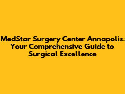 MedStar Surgery Center Annapolis: Your Guide To Surgical Care