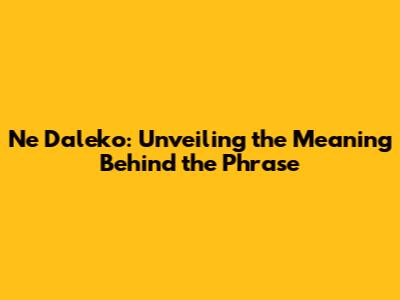 Ne Daleko: Unveiling The Meaning Behind The Phrase