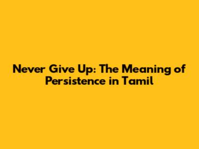 Never Give Up: The Meaning Of Persistence In Tamil