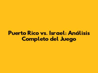 Puerto Rico Vs. Israel: El Juego Completo Y Análisis Detallado