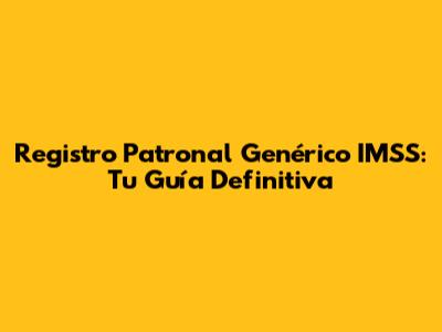 Registro Patronal Genérico IMSS: Guía Completa Y Actualizada