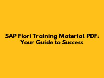 SAP Fiori Training Material PDF: Your Guide To Success