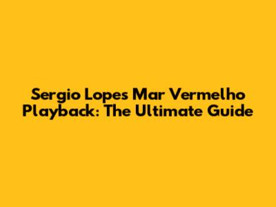 Sergio Lopes Mar Vermelho Playback: The Ultimate Guide