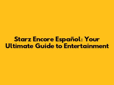 Starz Encore Español: Your Ultimate Guide To Entertainment