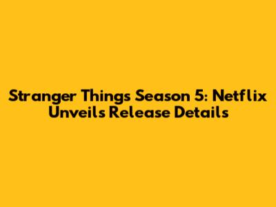 Stranger Things Season 5: Netflix Reveals Release Plans