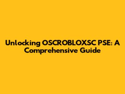 Unlocking OSCROBLOXSC PSE: A Comprehensive Guide