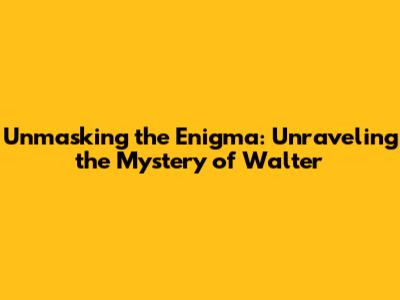 Unveiling the Mystery: The Essence of Walter
