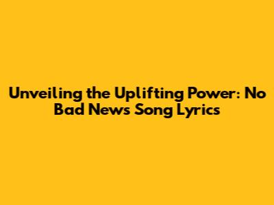 Unveiling The Uplifting Power: No Bad News Song Lyrics