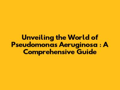 Unveiling The World Of *Pseudomonas Aeruginosa*: